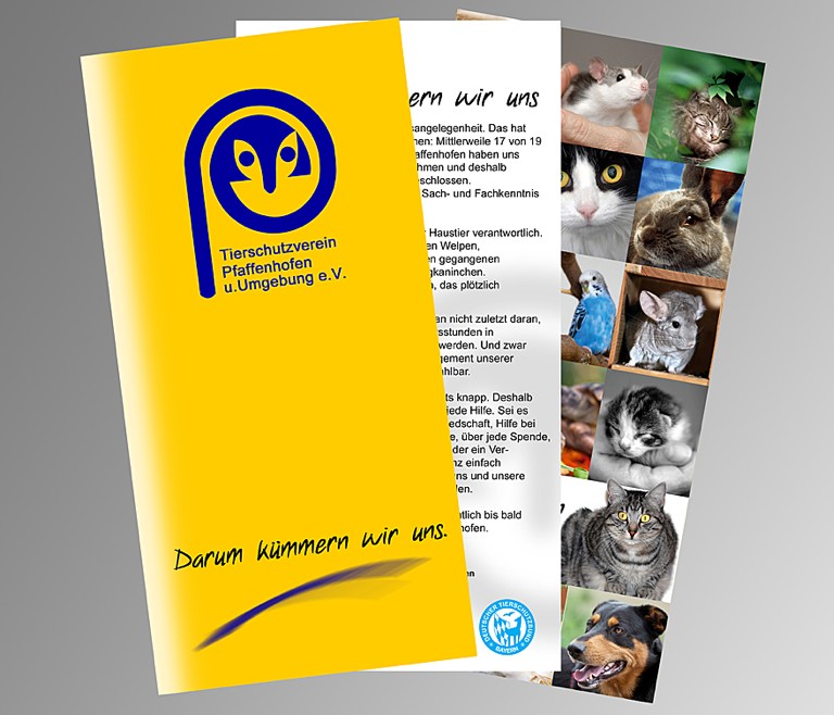 (ty) „Darum kümmern wir uns“ – unter diesem Titel hat der Tierschutzverein Pfaffenhofen seinen neuen Flyer aufgelegt. In dem kleinen Prospekt wird knapp und verständlich beschrieben, welche Aufgaben der Tierschutzverein hat, wie er sich finanziert und welche ehrenamtlichen, also kostenlosen Arbeiten Tag für Tag oben An der Weiberrast in Pfaffenhofen notwendig sind.