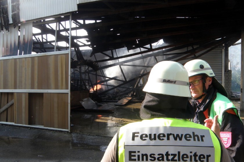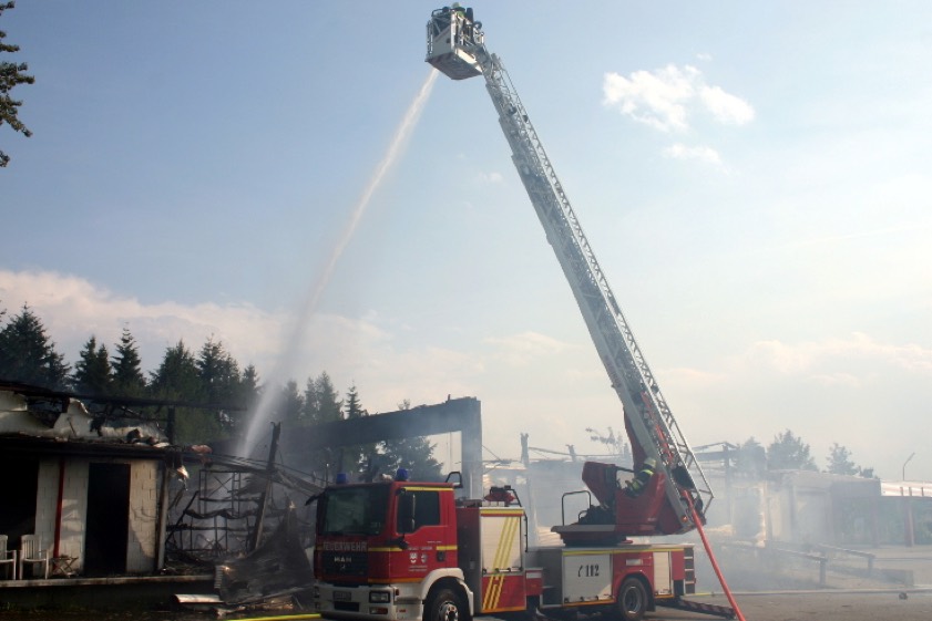 Wie es heißt, konnte nicht einmal genau ermittelt werden, an welcher Stelle der großen Halle das Feuer überhaupt ausgebrochen war. „Es gibt aber keine Anhaltspunkte für fahrlässige oder vorsätzliche Brandstiftung“, so der Polizei-Sprecher. Ein technischer Defekt gelte als mögliche Ursache, aber das sei eben letztlich nicht gesichert. Der Schaden sei deshalb so hoch anzusiedeln, weil auch die in der Lagerhalle untergebrachten Gerätschaften und Gegenstände ein Raub der Flammen wurden – unter anderem ein Boot und ein Verkaufswagen.