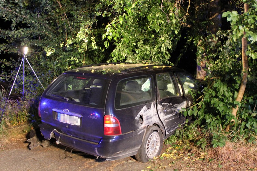 Ein mit zwei 19-jährigen Frauen besetzter Pkw kam wegen des Tiers von der Strecke ab, streifte eine Mauer und krachte letztlich frontal gegen einen Baum.