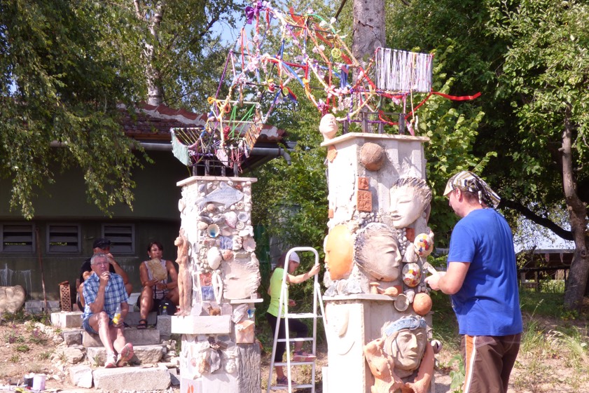 „Dann kam über die ungarische Keramik-Künstlerin Katalin Bereczki-Kossack vor zwei Jahren der Impuls, ein Friedenstor zu bauen“, sagt Mayer. Die Idee sei damit geboren gewesen. Mit der ersten Bauphase für das Projekt wurde im vergangenen Jahr begonnen. „Gemeinsam, inklusiv und interkulturell“, wie Mayer betont, entstanden zwei mehr als zwei Meter hohe Grundsäulen, die es zu gestalten galt.
