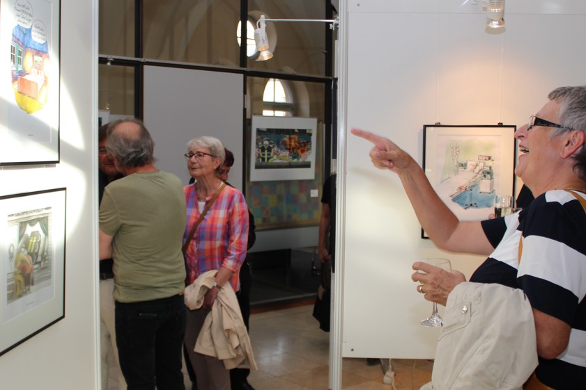 Die Ausstellung umfasst 83 Karikaturen, die auch in einem Katalog zu finden sind, der für fünf Euro im Bürgerbüro im Rathaus erhältlich ist. Sterben und Tod, so meinte Erdle, seien zwar Themen, die alle angehen, weil alle irgendwann davon betroffen sind. Allerding seien sie eher unangenehme, „eigentlich verdrängungspflichtige Tabuthemen“. Er hatte aber in der Literatur einige amüsante Beispiele für treffenden schwarzen Humor gefunden, über welche die Zuhörer dann auch herzlich lachen konnten.