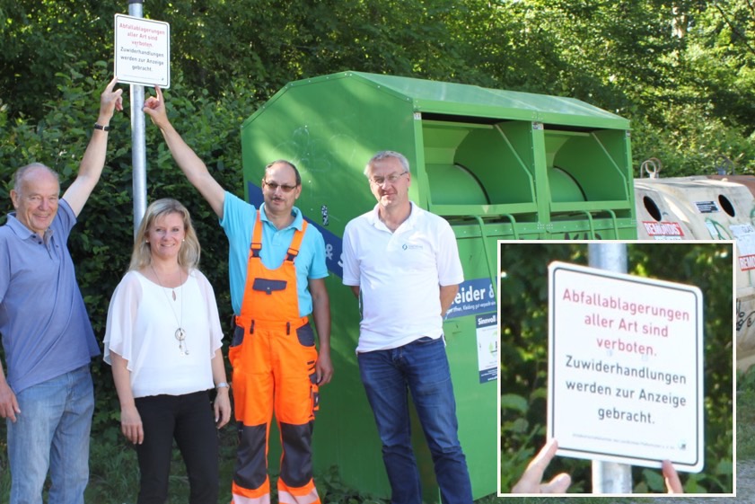 An fünf so genannten Container-Inseln in Pfaffenhofen wurden jetzt von den Stadtwerken Schilder aufgestellt mit der Aufschrift: „Abfallablagerungen aller Art sind verboten. Zuwiderhandlungen werden zur Anzeige gebracht“. Angeregt worden war diese Maßnahme nach Angaben des Landratsamts von Franz van Houtem, einem umweltbewussten Kreisstädter, dem die wiederrechtliche Art der Müllentsorgung schon seit längerer Zeit aufgefallen war.