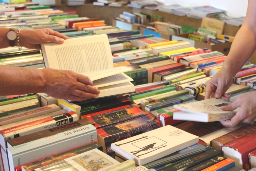 Eine große Auswahl an gut erhaltenen Romanen, Kinder- und Jugendbüchern, Hörbüchern und Musik-CDs wartet auf Käufer. Auch Sachbücher verschiedener Themen und Gebiete werden feilgeboten. Geöffnet ist der Flohmarkt zu den Öffnungszeiten der Stadtbücherei: Dienstag von 17 bis 19 Uhr, Mittwoch von 9 bis 11 und von 15 bis 17 Uhr; Donnerstag von 15 bis 17 Uhr, Freitag von 17 bis 19 Uhr und Sonntag von 9.30 bis 11.30 Uhr.
