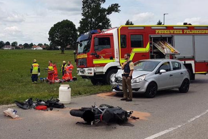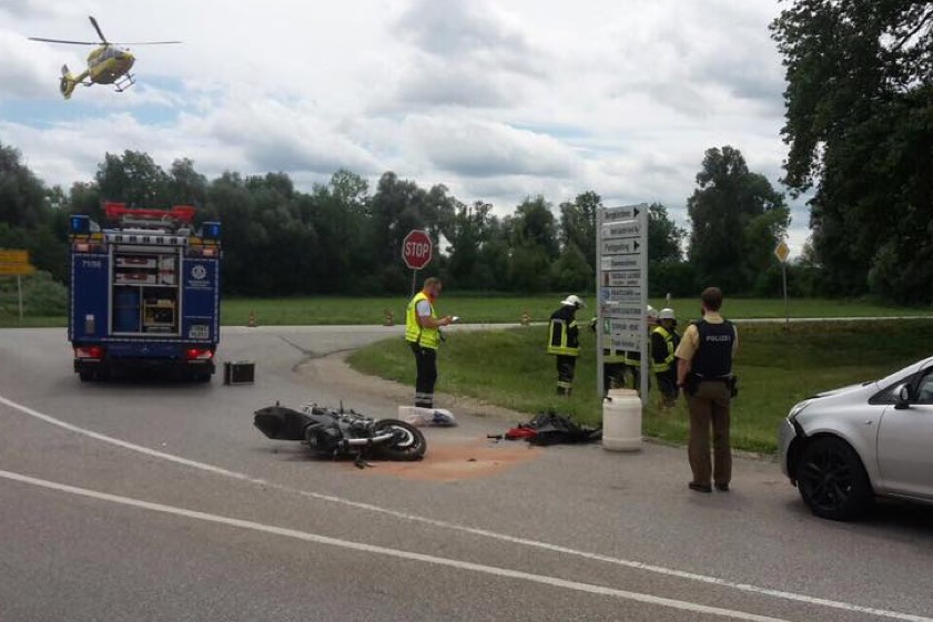 18-jähriger Biker geriet beim Abbiegen auf die Gegenfahrbahn und krachte mit einem Auto zusammen. Er musste mit dem Hubschrauber in eine Münchner Klinik geflogen werden.