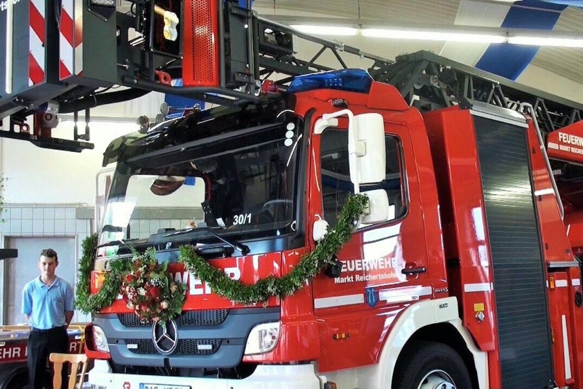 (ty) Im Rahmen einer Feierstunde hat Pater Franz Purainer am Wochenende gleich zwei Fahrzeuge der Reichertshofener Feuerwehr gesegnet: eine neue Drehleiter und ein so genanntes Flachwasser-Schubboot. Zahlreiche Gäste fanden sich zu diesem feierlichen Anlass in der geschmückten Fahrzeughalle des Feuerwehrhauses ein – darunter Bürgermeister Michael Franken, Vize-Landrat Anton Westner, Gemeinderäte, Abordnungen der Feuerwehren Langenbruck, Winden/Aign, Hög und vom Patenverein aus Baar sowie Vertreter der Kreisbrandinspektion und der hiesigen BRK-Rettungswache.