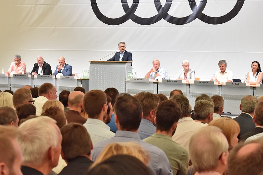 (ty) Auf der zweiten Betriebsversammlung des Jahres haben die Arbeitnehmervertreter von Audi einen Richtungswechsel in der Audi-Produktion gefordert. Aus Sicht des Betriebsrats ist aktuell keine Strategie erkennbar. Diese sei jedoch dringend erforderlich, um die elektrische Zukunft, vor allem an den Heimatstandorten Ingolstadt und Neckarsulm, erfolgreich zu gestalten. „Gerade jetzt müssen zielsichere Entscheidungen für unsere Audi-Zukunft getroffen werden, doch die bleiben bis dato aus“, kritisierte der Gesamtbetriebsrats-Vorsitzende Peter Mosch vor rund 8000 Audianern.