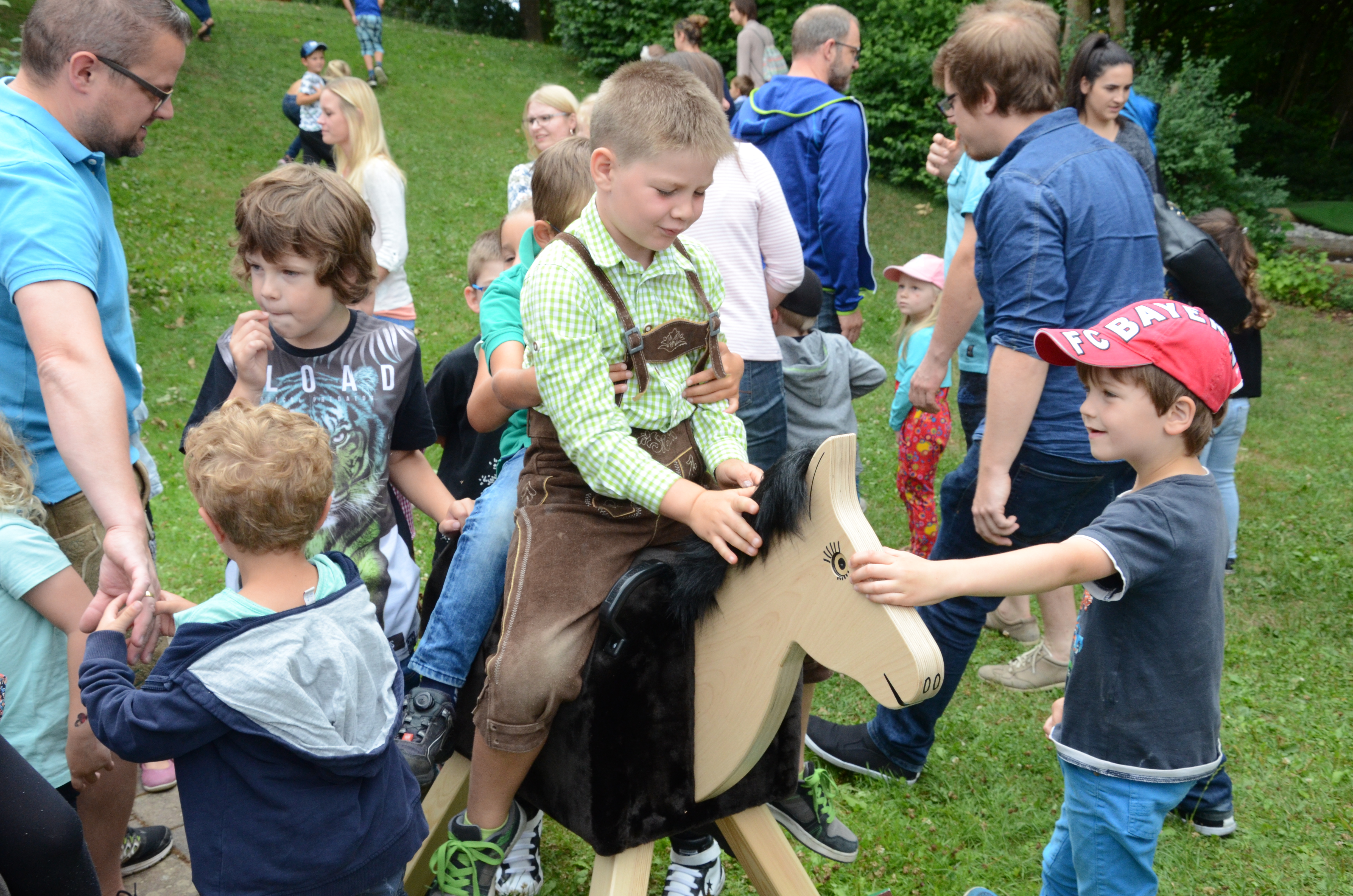 Vor der Übergabe der Holzpferde hatten die Kinder das gut besuchte Familienfest mit Musik und Gesang eröffnet. Danach gab es eine „Familien-Rallye“ mit verschiedenen Stationen, an die sich eine Siegerehrung und der gemütliche Teil anschlossen. Im Hettenshausener Kindergarten „Ilmtalmäuse“ werden aktuell 74 Buben und Mädchen in drei Gruppen betreut.