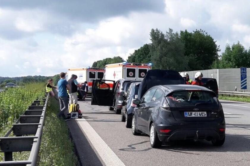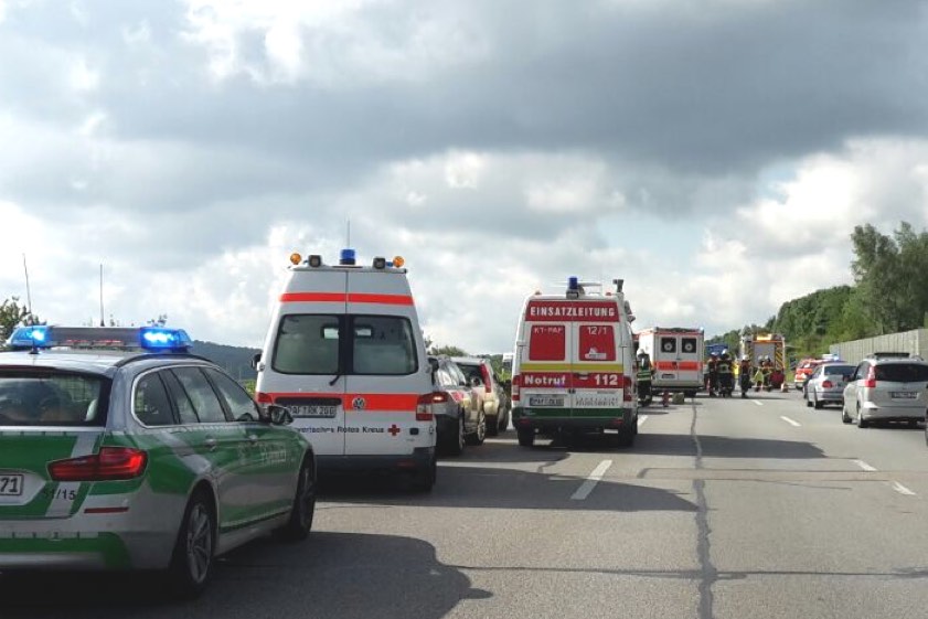 Durch den heftigen Anstoß wurden die drei genannten Pkw aufeinander geschoben, sie blieben – teilweise total beschädigt – auf der Autobahn liegen. Da die Fahrzeuge zum Teil voll besetzt waren, wurden neben den Feuerwehren aus Manching und Reichertshofen auch mehrere Rettungswagen sowie zudem der Rettungshubschrauber an die Unglücksstelle beordert.