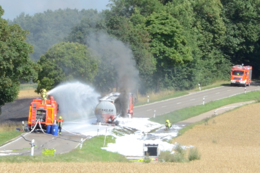 Außerdem gibt es ein Video: Tanklastzug in Brand: Video vom Großeinsatz