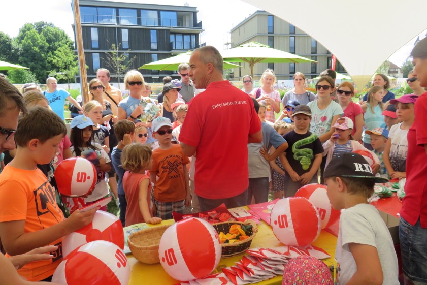 Für die Teilnehmer und Zuschauer war es eine Riesengaudi. Bei der großen Siegerehrung freuten sich alle Mädchen und Buben über Urkunden, Medaillen und Sachpreise – sowie die Mitarbeiterinnen und Mitarbeiter der Sparkasse über die tolle Beteiligung. Gerne leisteten sie bisweilen auch „Aufklärungsarbeit“ in Bezug auf den Namen „Knaxiade“. Er ist abgeleitet von „Knax“, dem Comic-Magazin der Sparkasse für ihre ganz jungen Kunden, und „Olympiade“. Die Stationen beim Aktionstag waren jeweils einer der Comicfiguren gewidmet.