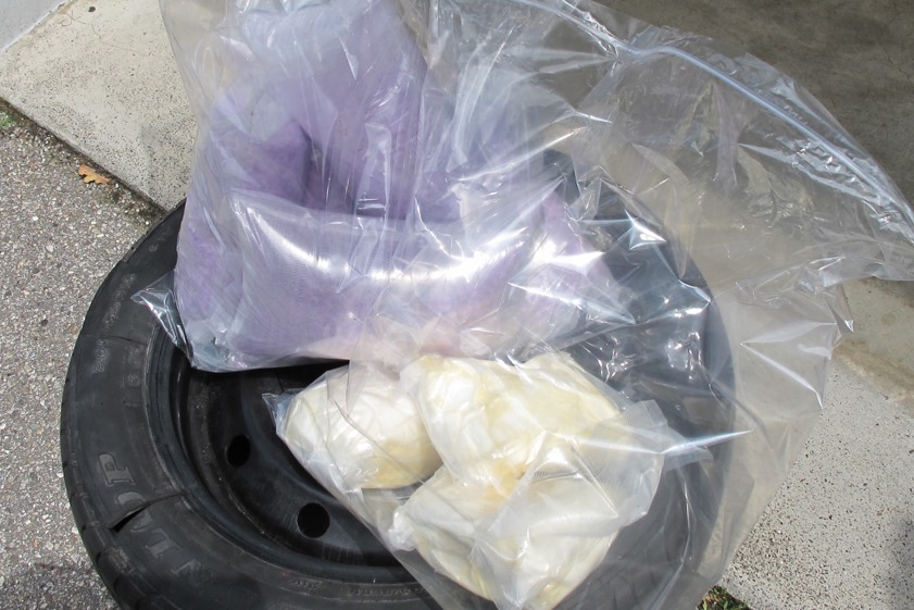 (ty) Wie heute erst bekanntgegeben wurde, ist den Schleierfahndern am vergangenen Donnerstag ein bemerkenswerter Schlag gegen den Drogenhandel gelungen. Zirka zwölf Kilo Amphetamin und Ecstasy (siehe Foto) wurden dabei sichergestellt – versteckt war der Stoff im Ersatzreifen beziehungsweise hinter dem Armaturenbrett eines Pkw.