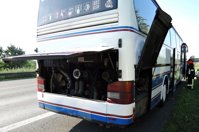 Nach Angaben der Ingolstädter Verkehrspolizei saßen 42 Jugendliche mit Betreuern in dem Bus, der auf der A9 in Richtung Norden unterwegs war. Gesteuert wurde er von einem 39-Jährigen aus München. Kurz vor 18 Uhr – zwischen der Rastanlage Köschinger Forst und Denkendorf – stellte laut Polizei ein vorbeifahrender Verkehrsteilnehmer zunächst eine Rauchentwicklung rechts im Bereich des Motorraums sowie dann kurz darauf dort eine offene Flamme an dem Bus fest.