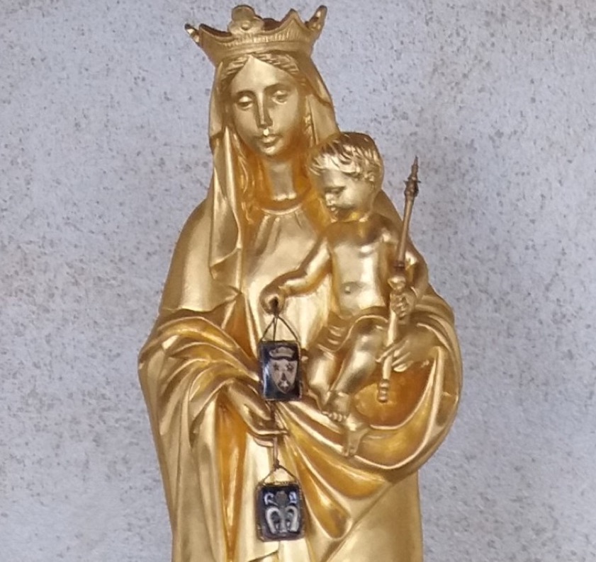 (ty) Unbekannte stahlen in der Nacht zum Montag eine Marienstatue im Wert eines mittleren vierstelligen Eurobetrags aus einer Kapelle im Wilhelmsthaler Ortsteil Lahm (Kreis Kronach). Zwischen 20 und 8 Uhr verschafften sich die Täter Zutritt zur versperrten Marienkapelle, nahmen die so genannte Goldene Skapuliermadonna an sich und ergriffen unerkannt die Flucht. Die Statue ist vergoldet, zirka 60 Zentimeter hoch und etwa 25 Kilogramm schwer. Inzwischen hat die Kriminalpolizei die Ermittlungen übernommen und bittet um Hinweise. Zeugen werden gebeten, sich Telefon (0 95 61) 64 50 bei zu melden. (Foto: Polizei)