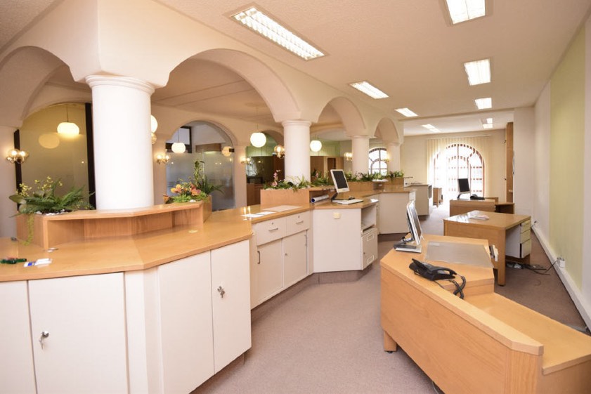 Das Anwesen beinhaltet im Erdgeschoss die ehemaligen Geschäftsräume der Bank mit rund 200 Quadratmetern Nutzfläche, im Obergeschoss eine Allgemeinarzt-Praxis mit knapp 140 Quadratmetern Nutzfläche sowie eine Zwei-Zimmer-Wohnung mit rund 70 Quadratmetern Wohnfläche. Die beiden Einheiten im Obergeschoss seien „solide vermietet“.