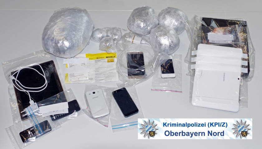 Rund 70 Polizeibeamte seien heute bei den drei Durchsuchungen im Einsatz gewesen. Während für die Beschuldigten die Handschellen klickten, wurden die Ermittler auch anderweitig fündig. Insgesamt seien ungefähr drei Kilogramm Marihuana – davon gut ein Kilo in Baar-Ebenhausen – sowie mehrere Mobiltelefone und Tablet-Computer sichergestellt worden (siehe Foto unten).