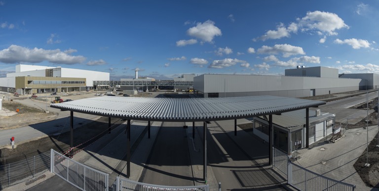 Der Blick auf den neuen Audi-Standort über den Einfahrtsbereich hinweg.
