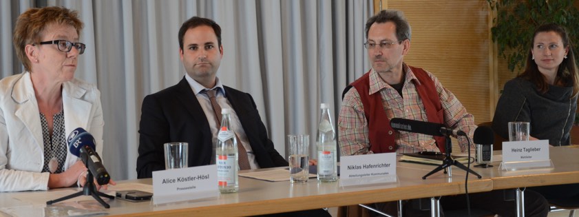 Viel beachteter Pressetermin: Landratsamt-Sprecherin Alice Köstler-Hösl (von links), Niklas Hafenrichter (Abteilungsleiter Kommunales), Wahlleiter Heinz Taglieber, Vize-Wahlleiterin Konstanze Erdle (Foto: Zell).