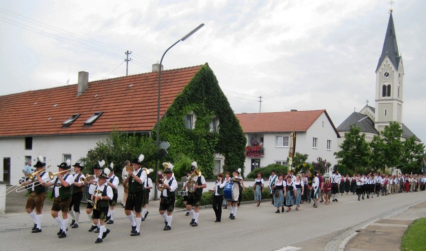 Um 17.30 Uhr treffen sich heute die Ehrengäste, die Abordnungen der Vereine und alle weiteren Teilnehmer des Festzugs beim Gemeindehaus. Dort sind ein Standkonzert und einen Freibier-Ausschank vorgesehen. Um 18 Uhr stellt sich dann der Festzug auf und anschließend folgt der Ausmarsch mit der hiesigen Blaskapelle und der Stadtkapelle Geisenfeld zum Festplatz.