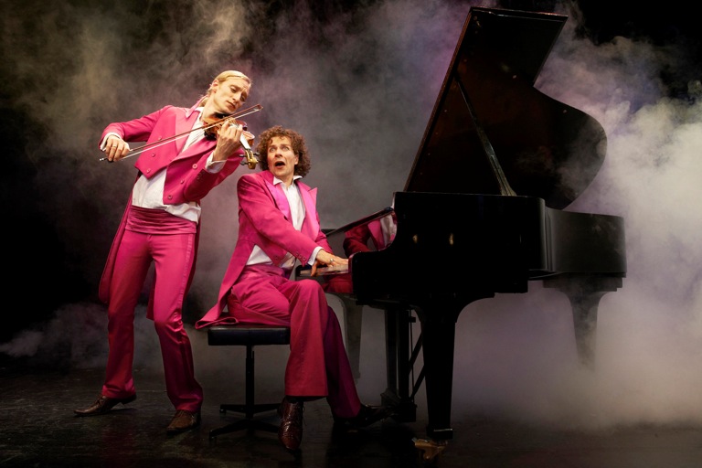 Mit einem Schuss Humor gewürzt ist auch der Auftritt der Schweizer Virtuosen Giovanni Reber am Flügel und Michael Giertz an der Violine: Als "Les Papillons" spielen sie am 23. Februar 100 Hits in 90 Minuten und veranstalten dabei eine wilde Ohrwurmjagd auf Tasten, Saiten und Bogen.