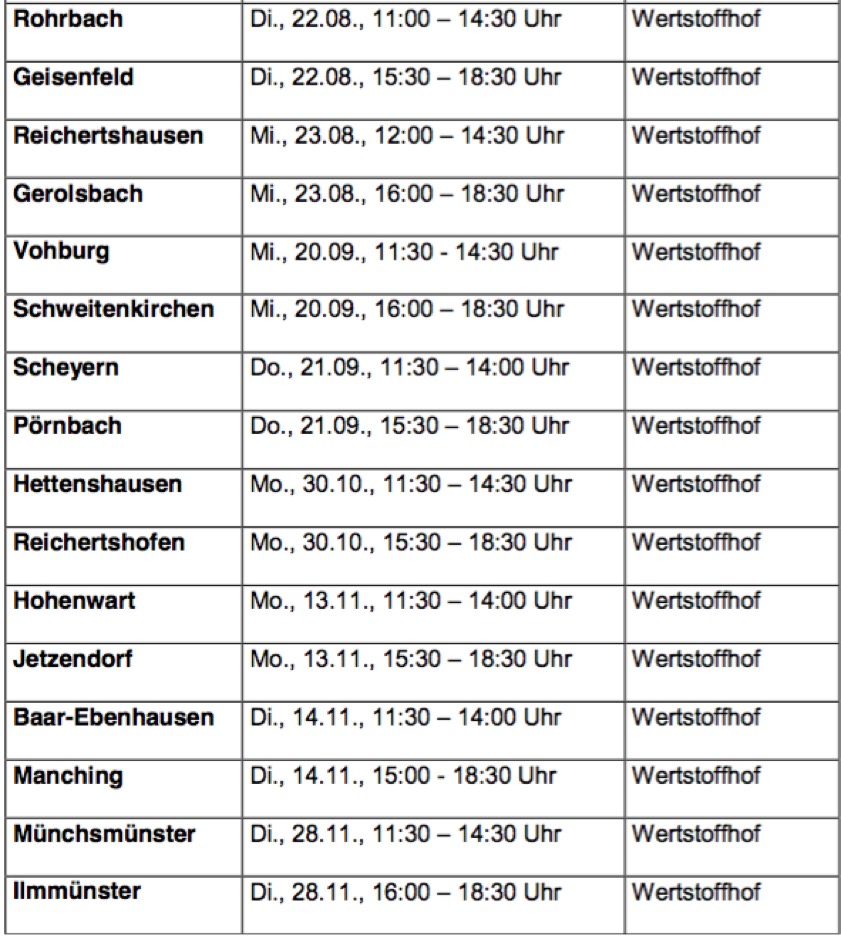 Termine für Problem-Abfall-Sammlungen im Kreis Pfaffenhofen