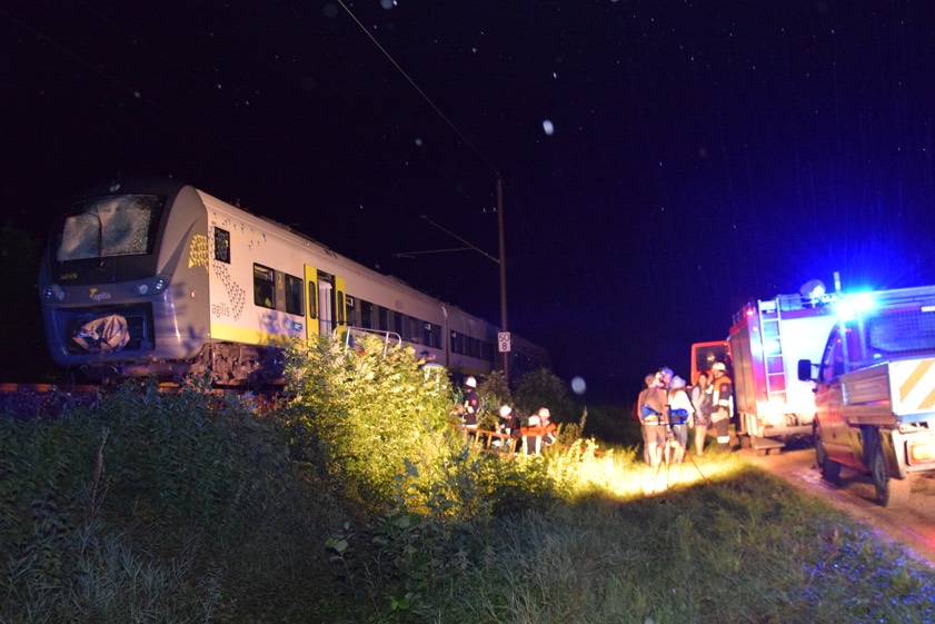 Ein Zug-Unfall bei Neustadt/Donau hat gestern Abend den Bahnverkehr auf der Strecke zwischen Regensburg und Ingolstadt vollständig zum Erliegen gebracht. Ein Agilis-Zug war mit einem Ast oder kleinen Baum kollidiert, der wegen des Unwetters im Gleisbett gelandet war. Die Oberleitung wurde auf mehreren hundert Metern ramponiert, der Triebwagen demoliert. Erste, vorsichtige Schätzungen gehen von 150 000 Euro Schaden aus (Foto unten). Der Zug wurde von den angerückten Einsatzkräften evakuiert, die etwa 20 Passagiere wurden mit einem Bus weiterbefördert. Verletzt wurde niemand. Die Strecke ist wohl noch bis zum Sonntagmorgen gesperrt. Lesen Sie dazu mehr: Zug-Unfall bei Neustadt