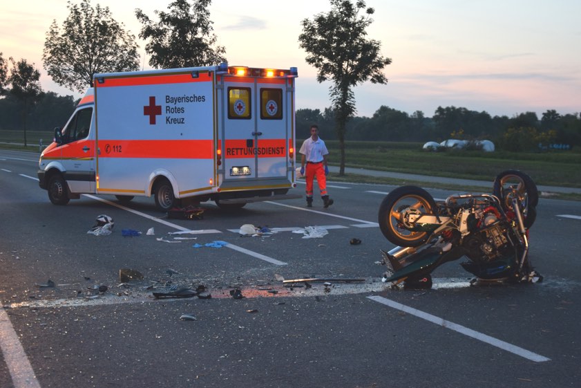 Der Unfall ereignete sich gegen 19.50 Uhr. Nach bisherigen Erkenntnissen der Kelheimer Polizeiinspektion war der 33-jährige Motorrad-Fahrer mit seiner Honda in Neustadt an der Donau in Richtung Pförring auf der Bundesstraße unterwegs, zeitgleich sei der 82-jährige Augsburger mit seinem Mercedes auf der Donaustraße stadtauswärts gefahren. Der Pkw-Lenker wollte dann, so wird gemeldet, von der untergeordneten Donaustraße nach links in die übergeordnete Bundesstraße einbiegen. Dabei übersah der Rentner offenbar den Biker und es kam zu der fatalen Kollision