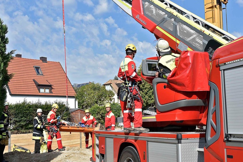 Die Staffel der Höhenrettungsgruppe sicherte den Verunglückten dann in einer Schleifkorbtrage; in dieser konnte er letztlich mit Hilfe der Drehleiter aus der Baugrube gerettet werden. Während der Rettungsmaßnahmen war der Patient nach Angaben der Feuerwehr zu jeder Zeit ansprechbar. Der Arbeiter wurde in eine Münchner Spezialklinik gebracht. Der genaue Unfallhergang sowie die Ursache des Unglücks sind nun Gegenstand der polizeilichen Ermittlungen.