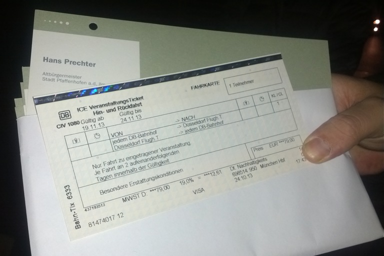 7.03 Uhr: Die erste Nachricht erreichte uns vor der Abfahrt: „Tja, Nachhaltigkeit hat seinen Preis - Abfahrt 7:03 Uhr ganz nachhaltig mit der Bahn... auf längsten Theke der Welt... Die Pfaffenhofener Delegation um Wirtschaftsförderer Matthias Scholz und Wirtschaftsreferent Markus Käser (SPD) ist vollzählig… Bürgermeister Thomas Herker (SPD) ist schon dort ;-)“