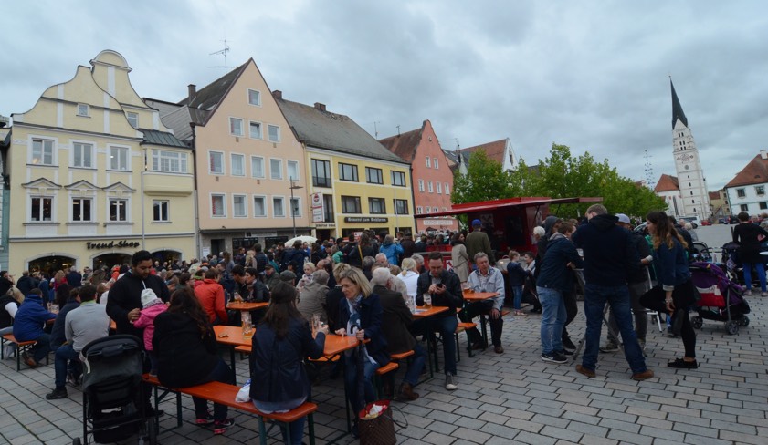 (ty) Die Maß Bier kostet heuer auf dem Pfaffenhofener Volksfest 7,90 Euro – und man ist stolz darauf, dass man unter acht Euro bleibt. Das hat die Stadtverwaltung heute bei einem Pressetermin bekanntgegeben. Fast direkt im Anschluss konnte sich dann die breite Öffentlichkeit kostenlos vom Geschmack der Gerstensäfte überzeugen, die von 6. bis 17. Oktober zum Ausschank kommen: Denn um 17 Uhr stand auf dem Hauptplatz die traditionelle Bierprobe an. Die hiesigen Brauereien Urbanus und Müllerbräu sowie die erstmals vertretene Kloster-Brauerei von Scheyern schenkten gratis aus, dazu musizierten die „Pfahofara Buam“ und es gab Brezen. Am Stand der Stadtverwaltung wurden der neue Volksfest-Bierkrug sowie das diesjährige Plakat verkauft.