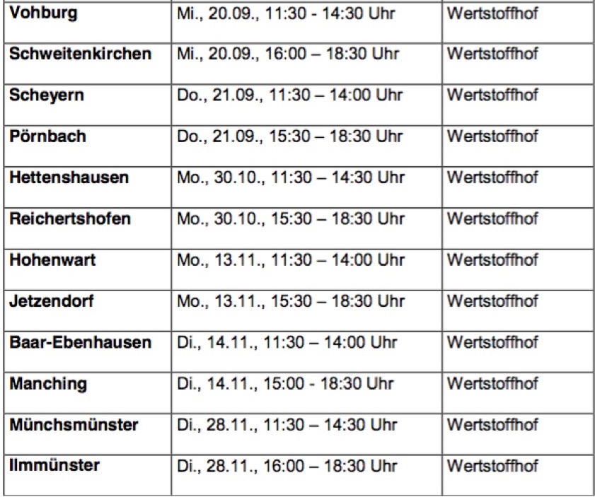Termine für Problem-Abfall-Sammlungen im Kreis Pfaffenhofen