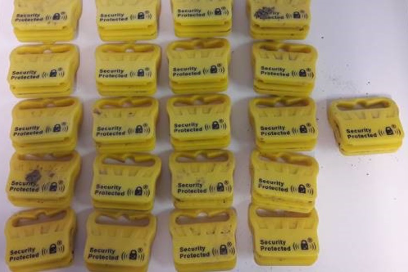 (ty) In einem Maisfeld an der Matthias-Bauer-Straße in Neuburg waren am Montag 21 gelbe Warensicherungen gefunden worden, die nach heutigen Angaben der örtlichen Polizeiinspektion bisher nicht zugeordnet werden konnten. „Eventuell liegt ein Diebstahl vor und die Warensicherungen wurden in dem Maisfeld entsorgt“, so ein Polizei-Sprecher. Die Neuburger Inspektion bittet unter der Rufnummer (0 84 31) 67 11 0 um Hinweise zu diesen aufgefundenen Gegenständen und veröffentlicht dazu das hier gezeigte Foto.