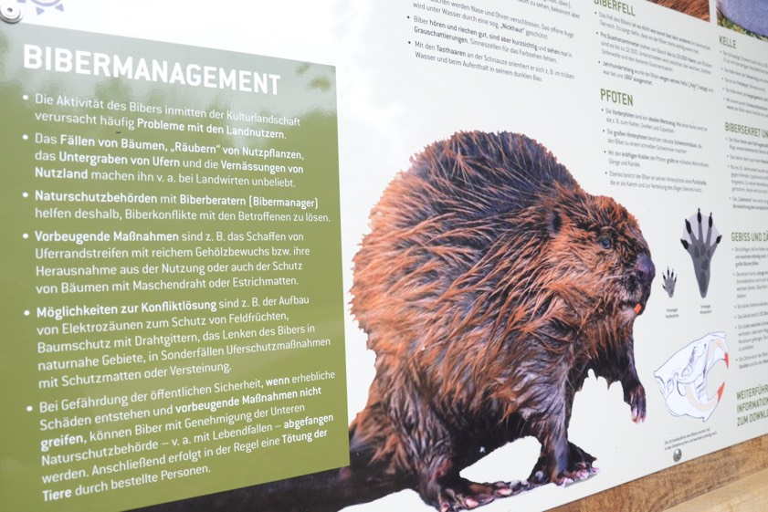 Der Lehrpfad weist auch auf die Probleme hin, die der Biber macht: Sogar von einer möglichen Tötung ist die Rede.