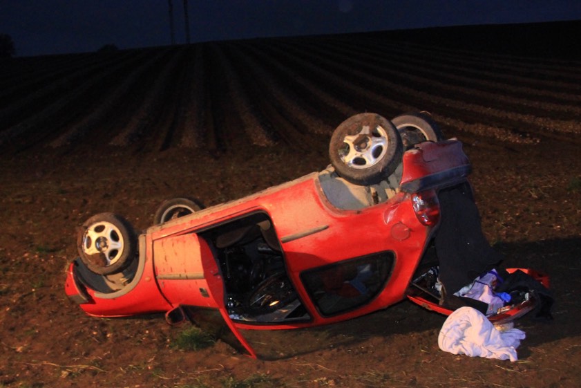 (ty) Gestern Abend gegen 18.20 Uhr war eine 32-Jährige mit ihrem Pkw auf der Regensburger Kreisstraße 3 von Thalmassing in Richtung Gebelkofen unterwegs, als es böse krachte. Am Ende einer Linkskurve geriet die Opel-Corsa-Fahrerin alleinbeteiligt und aus noch unbekannter Ursache nach links von der Strecke ab: Der Wagen kam letztlich auf dem Dach im angrenzenden Feld zum Liegen (Foto oben). Die Frau wurde mit mittelschweren Verletzungen von der Feuerwehr befreit und dann ins Uni-Klinikum nach Regensburg gebracht. Am Pkw entstand wirtschaftlicher Totalschaden.