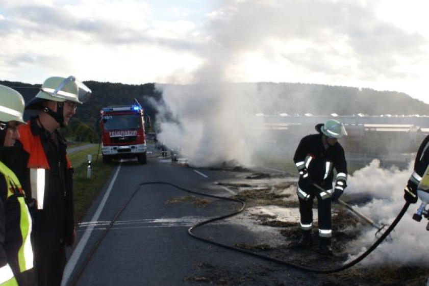 (ty) Manchmal läuft es einfach blöd. Gestern gegen 17 Uhr war 37-Jähriger mit seinem Auto samt Anhänger auf der Staatsstraße 2230 von Mühlbach in Richtung Dietfurt (Kreis Neumarkt) unterwegs, als es zu einem flammenden Zwischenfall kam. Auf dem Anhänger waren Strohballen geladen; zirka 100 Meter nach dem Ortsende von Mühlbach kam dem Pkw-Gespann laut Polizei ein Sattelzug entgegen. „Exakt in dem Moment, als sich die Fahrzeuge unmittelbar begegneten, warf der Fahrer des Sattelzugs, wohl unbedacht, einen brennenden Zigaretten-Stummel aus dem Fenster“, berichtet ein Polizei-Sprecher. Und so kam es wie nicht hätte kommen sollen: „Die Glut fiel ausgerechnet in das auf dem Pkw-Anhänger geladene Stroh und setzte dieses in Brand.“