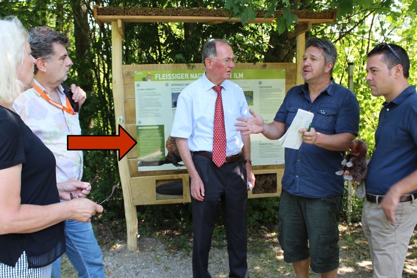 Fakt ist: Der Lehrpfad beleuchtet die beklagten "Schattenseiten" des Bibers explizit und deutlich. Das hätte Vize-Landrat Westner eigentlich wissen können. Er war nämlich Ende Juli nicht nur bei der offiziellen Eröffnung dabei. Sondern ließ sich dabei auch just vor genau der Schautafel fotografieren, auf der die Biber-Probleme sowie mögliche Gegenmaßnahmen behandelt werden – bis hin übrigens zur Tötung von Tieren.