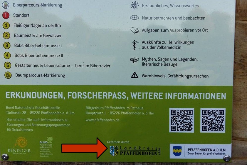 Gefördert durch den Landkreis, heißt es schon mal beim Biber-Lehrpfad – obwohl das Kreis-Gremium den Zuschuss versagte.