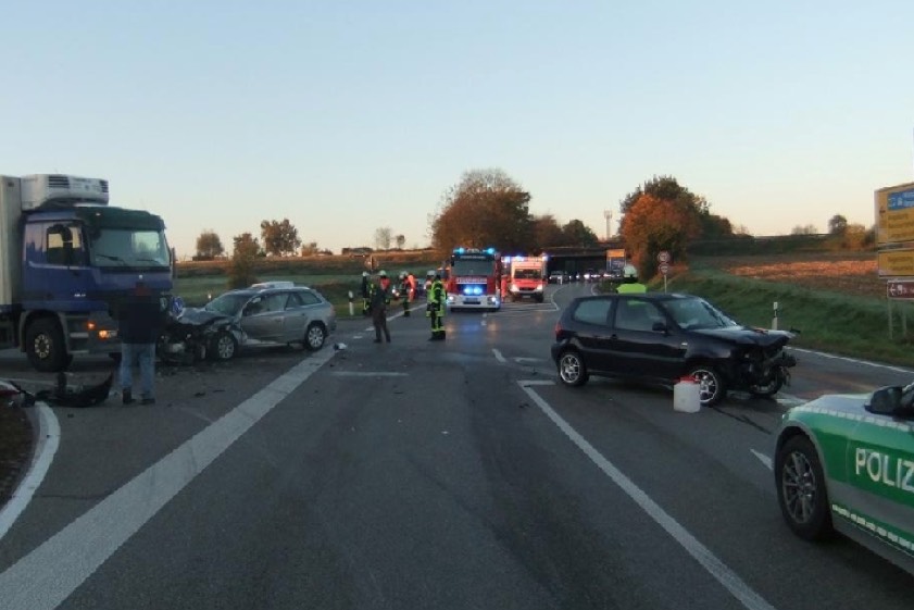 Durch den Zusammenprall wurde das Auto des Mannes gegen einen Lkw geschleudert, dessen 53-jähriger Fahrer aus Ingolstadt vom Gewerbegebiet gerade auf die B 300 abbiegen wollte. Durch die Notbremsung des Lkw fuhr eine 24-Jährige aus Mainburg, die mit einem leeren Omnibus unmittelbar dahinter kam, noch auf den Lastwagen auf.