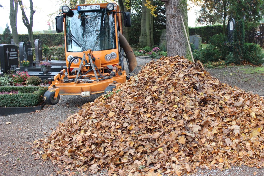 Großeinsatz für die Mitarbeiter der Stadtwerke: Vor Allerheiligen wird der Pfaffenhofener Friedhof alljährlich vom Laub befreit.