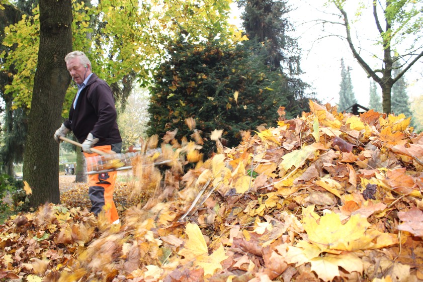 Immer vor Allerheiligen wird das gesamte Gelände auf dem Pfaffenhofener Friedhof sauber gepflegt, damit die Bürger in angemessener Umgebung ihrer Verstorbenen gedenken können. Aufgrund der großen Fläche, auf der sich das Laub verteilt, unterstützt die Abteilung Grünanlagen die Kollegen von der Abteilung Friedhof, die ja selbst auf Hochtouren arbeiten, um den Feiertag am Grab vorzubereiten. Fünf Mann bilden die Verstärkung – denn der Friedhof ist groß und Laub fällt an jeder Ecke an. "Das gesammelte Laub wird als Kompost in der Landwirtschaft eingesetzt", so Hollenberger. "So findet es dann den Weg zurück in den ewigen Kreislauf des Lebens."