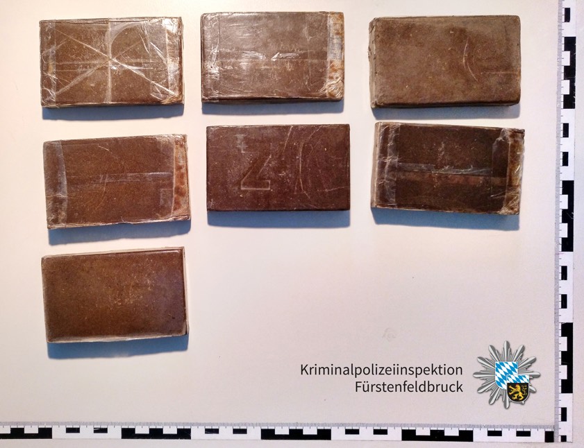 "Erkenntnisse aus einem anderen Ermittlungsverfahren brachte die Rauschgift-Fahnder auf die Spur des Trios", wurde heute aus dem Polizeipräsidium Oberbayern-Nord mitgeteilt. Mit einem Durchsuchungsbeschluss in der Hand klopften die Ermittler dann am gestrigen Morgen an die Tür der Fürstenfeldbrucker Wohnung, in der die drei Beschuldigten sich aufhielten. Die anschließende Razzia brachte tatsächlich sieben Platten Haschisch zum Vorschein, die offenbar für den Weiterverkauf bestimmt waren.