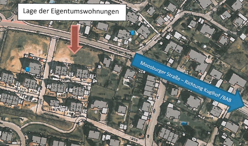 Sie liegen an der Moosburger Straße, sind bis zu 99 Quadratmeter groß und werden vergünstigt im Einheimischen-Modell verkauft.