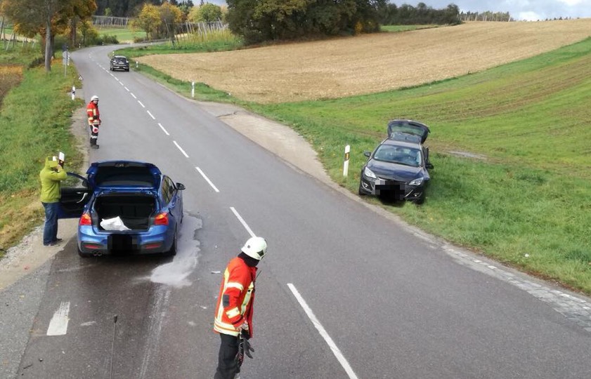 (ty) Gegen 13.15 Uhr war heute ein nicht ortskundiger 25-jähriger Opel-Lenker auf der Kreisstraße PAF 9 von Geisenhausen in Richtung Walkersbach unterwegs, als es krachte. Hinter ihm fuhr ein 51-Jähriger mit seinem BMW und als der Opel-Fahrer kurz nach dem Ortsende von Geisenhausen seinen Blinker nach rechts setzte, vermutete der BMW-Lenker, dass der 25-Jährige nun nach rechts in Richtung der Raststätte Holledau abbiegen werde. Der BMW-Fahrer setzte daraufhin, trotz der durchgezogenen Mittellinie, zum Überholen des Opel an. So schildert die Pfaffenhofener Polizeiinspektion den Hergang vor dem Zusammenstoß.