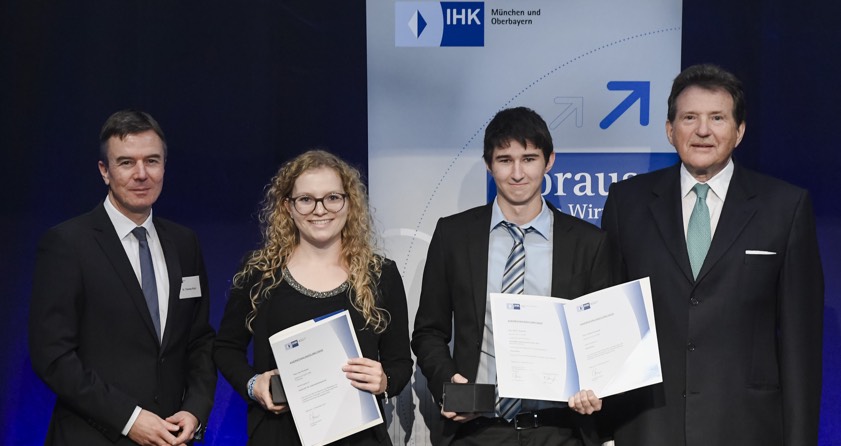 Eberhard Sasse, Präsident der IHK für München und Oberbayern, würdigte die erbrachten Leistungen in seiner Festrede. "Als Prüfungsbeste gehören Sie zur Elite Ihrer Jahrgänge. Dieser Erfolg war kein Selbstläufer, allem Prüfungsdruck zum Trotz, ist es Ihnen gelungen, sich mit ihrem Wissen und Können erfolgreich durchzusetzen." Sasse betonte die hervorragenden Berufsaussichten der Absolventen: "Bereits heute fehlen in Bayern 227 000 Fachkräfte. Gesucht werden in erster Linie keine Akademiker, sondern zu 85 Prozent beruflich qualifizierte Mitarbeiter – also Macher wie Sie." Gemeinsam mit Thomas Kürn, Bereichsleiter für berufliche Bildung bei der IHK, nahm Sasse die Auszeichnungen vor.