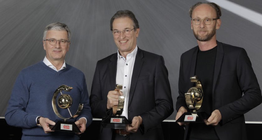 Volker Koerdt, Chefredakteur der Auto-Zeitung (Mitte), übergab die Auszeichnungen an Audi-Chef Rupert Stadler (links) und Marc Lichte, Design-Chef beim Ingolstädter Autobauer.