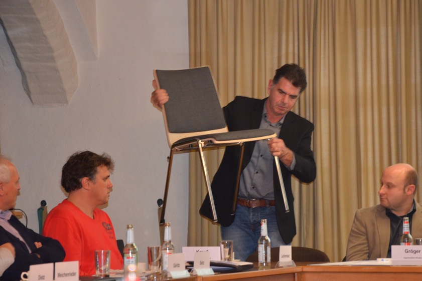 Zu entscheiden hatten die Kreispolitiker heute, ob die Stühle grau oder holzfarben sein sollen sowie in welcher Farbe die Polsterung geordert werden soll. Mit acht zu sechs Stimmen votierten die Ausschuss-Mitglieder zunächst einmal für graue Stühle. Bei der Frage nach der Polsterung stand kurzzeitig ein Grünton im Raum – doch selbst Kerstin Schnapp, die Fraktionschefin der Grünen, votierte gegen diese Farbe. Jedenfalls wird man im neuen Sitzungssaal künftig auf grauen Stühlen mit grauen Polstern hocken. Für Farbe müssen dann eben die politischen Lager sorgen.