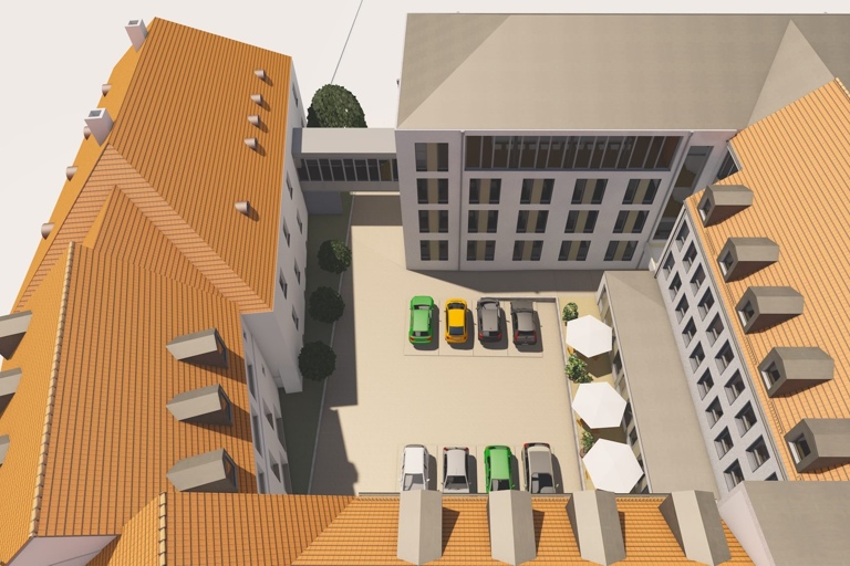 Ungefähr so sollte der Innenhof eigentlich nach der Umgestaltung aussehen. Nun muss etwas umgeplant werden.