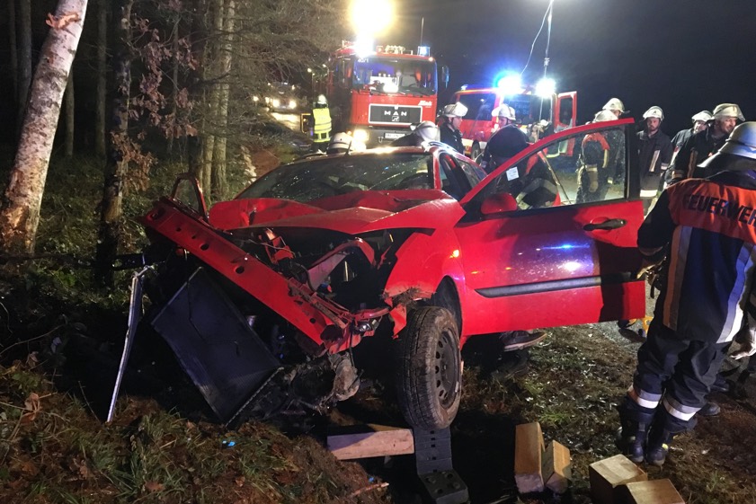 33-Jähriger kam gestern Abend mit seinem Pkw von der Kreisstraße ab und krachte gegen einen Baum.