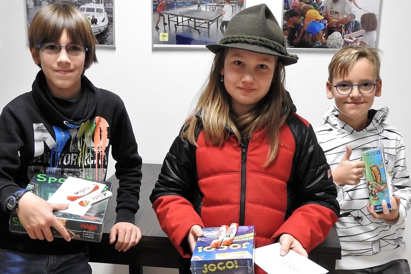 (ty) Alljährlich können die Kinder im Zuge der Ferienpass-Aktionen des Pfaffenhofener Kreisjugendrings in den Sommer- und Herbstferien fleißig Stempel und Aufkleber sammeln sowie ihre Stempelfelder dann beim KJR einreichen, um an einer Verlosung teilzunehmen. Mehr als 50 Buben und Mädchen haben heuer an dieser Verlosung des Kreisjugendrings teilgenommen. Am Ende konnten sich Ludwig Weber (Foto oben, von links), Stefanie Lerchl und Benjamin Jany über die drei Hauptpreise freuen: Sie erhielten jeweils einen Pfaffenhofener City-Gutschein Pfaffenhofen und ein Brettspiel.