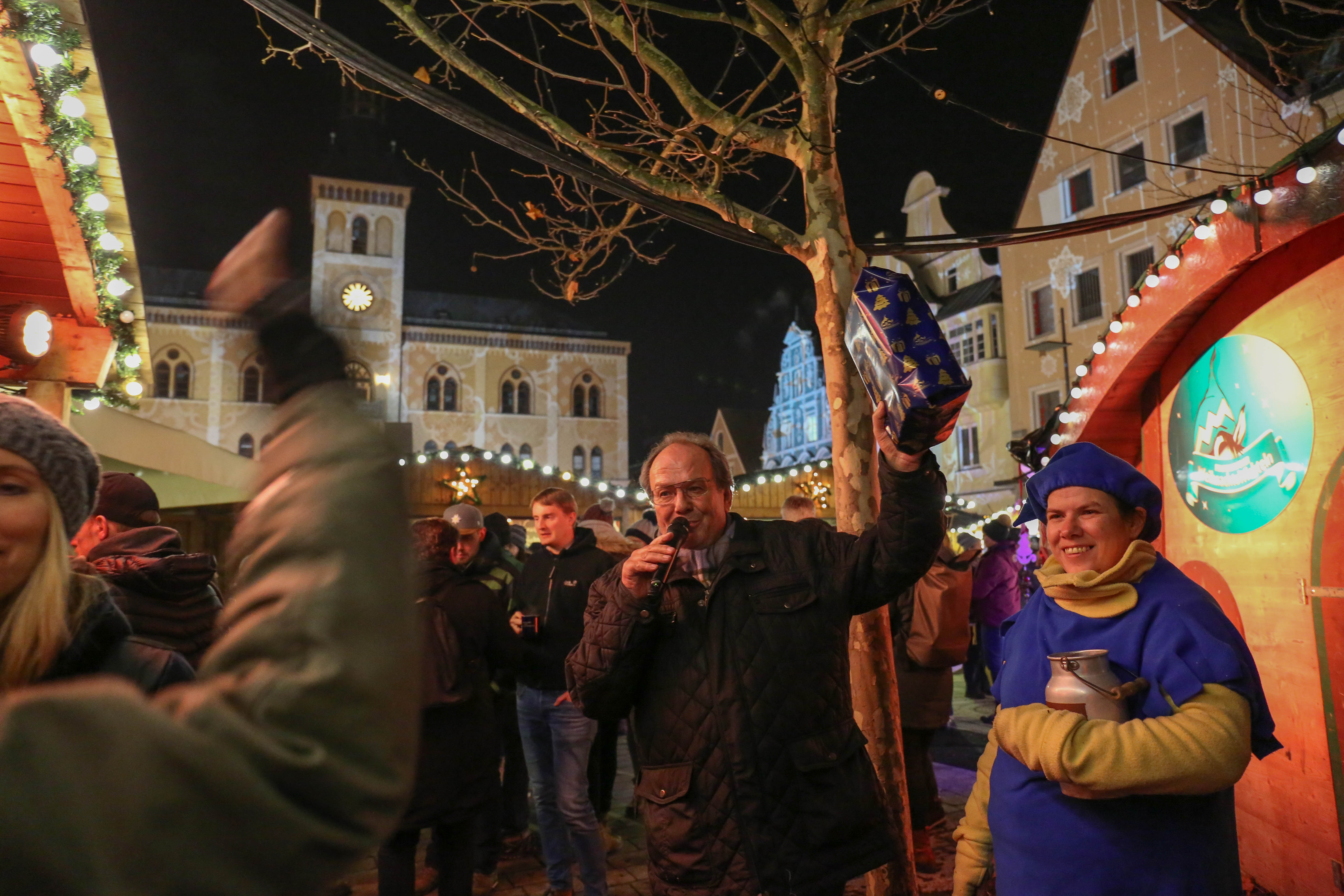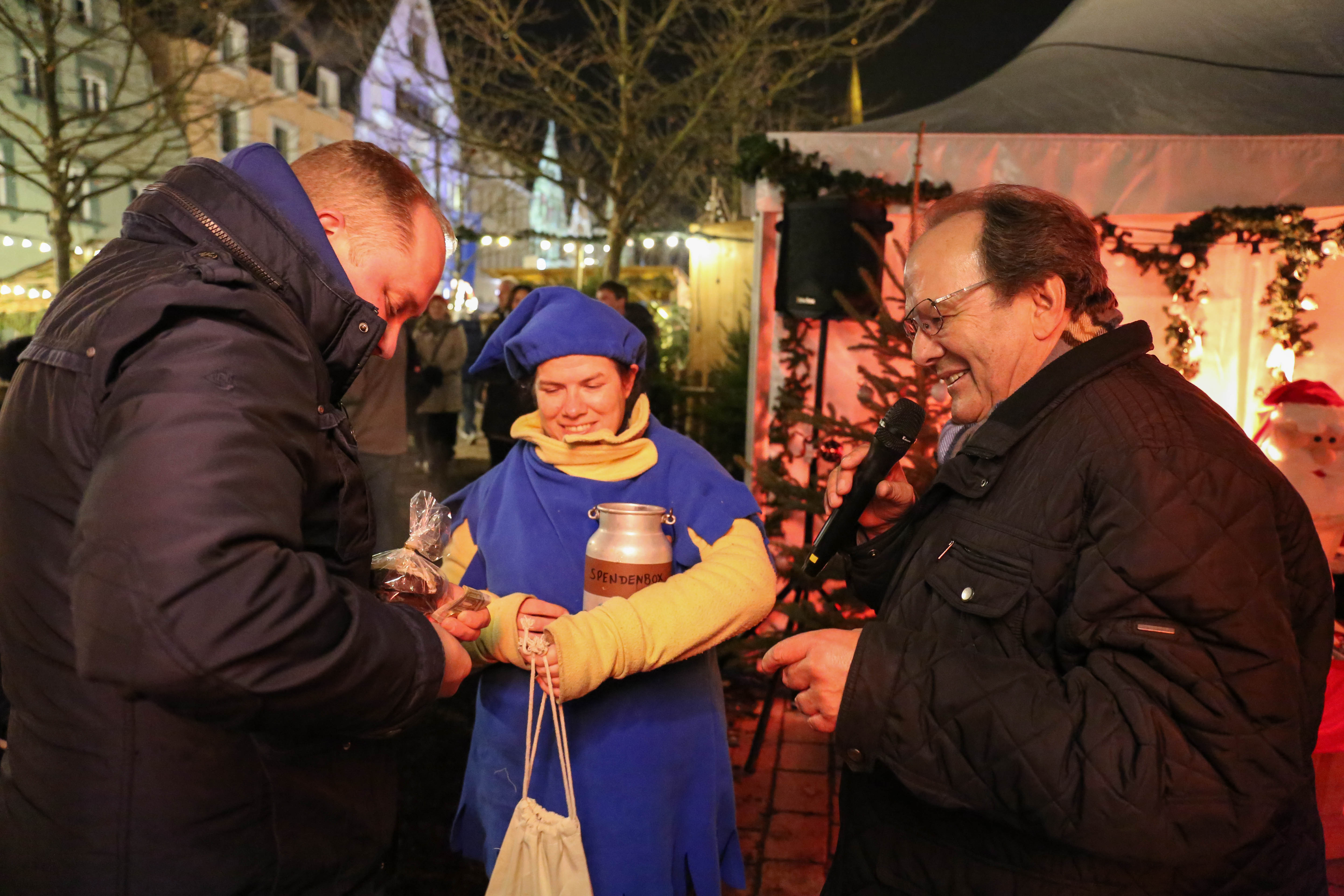 Starke Aktion auf dem Pfaffenhofener Christkindlmarkt: Geschäftsleute stifteten Geschenke, versteigert wurden sie zugunsten des Vereins SKM, der sich um Obdachlose kümmert.