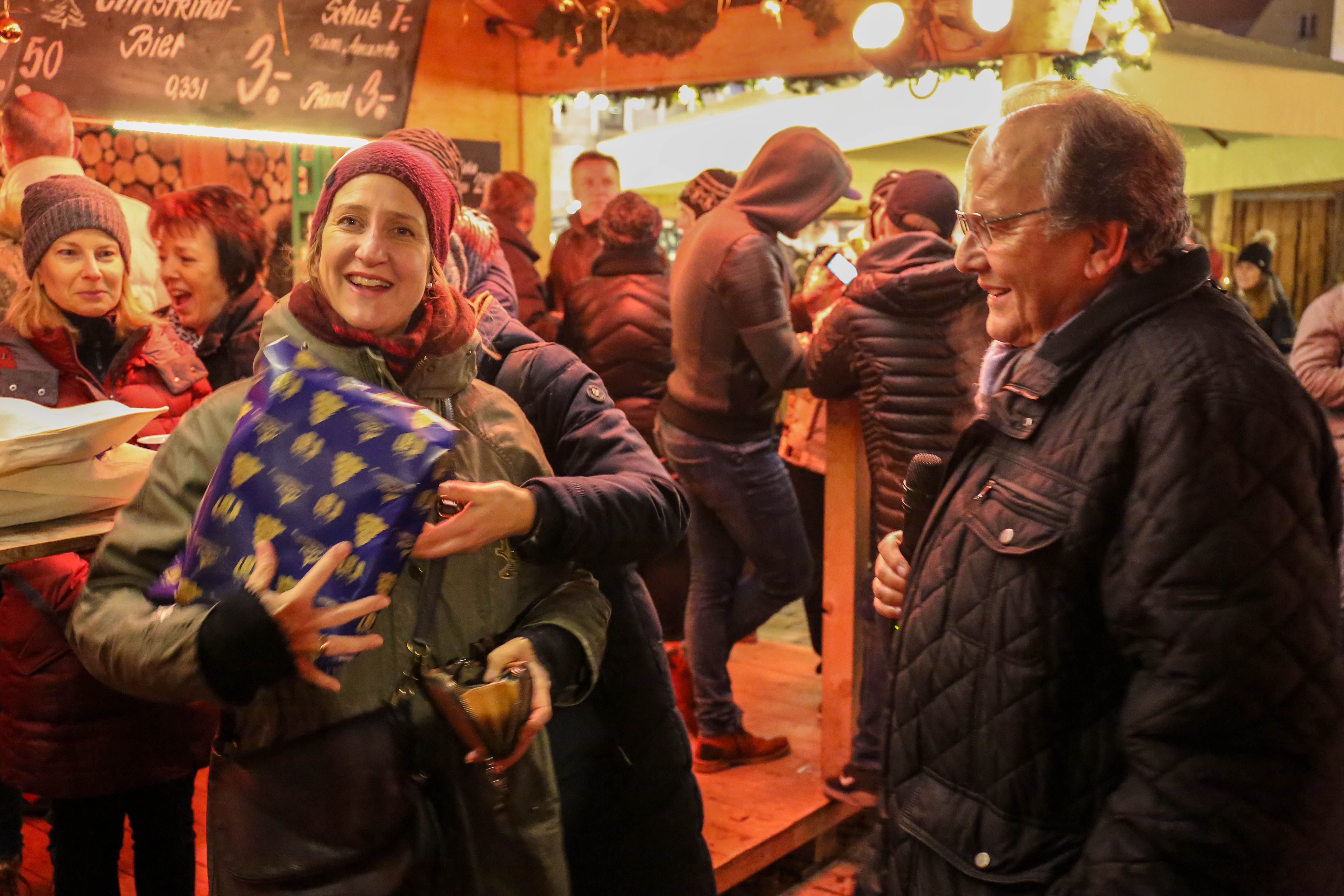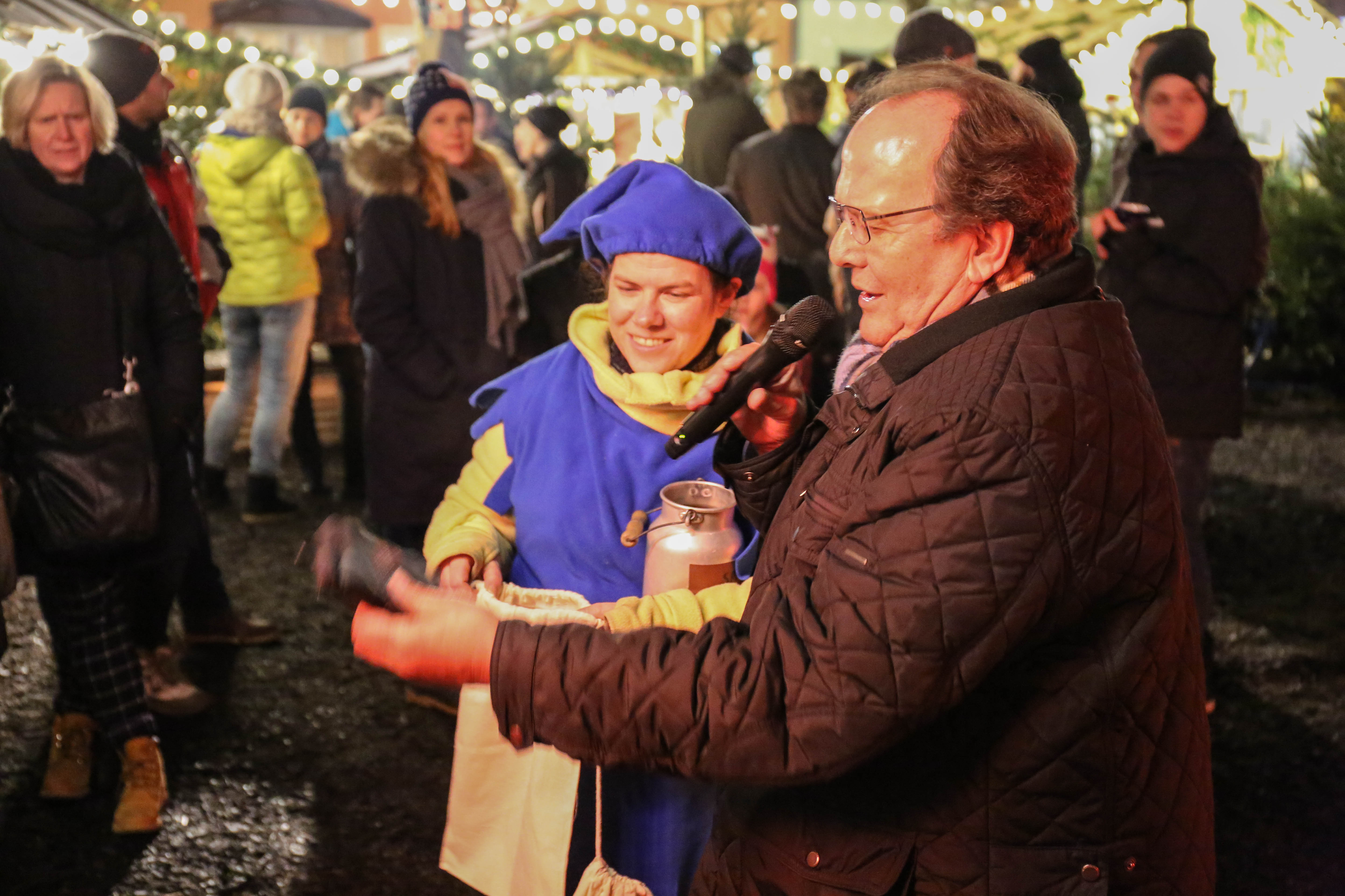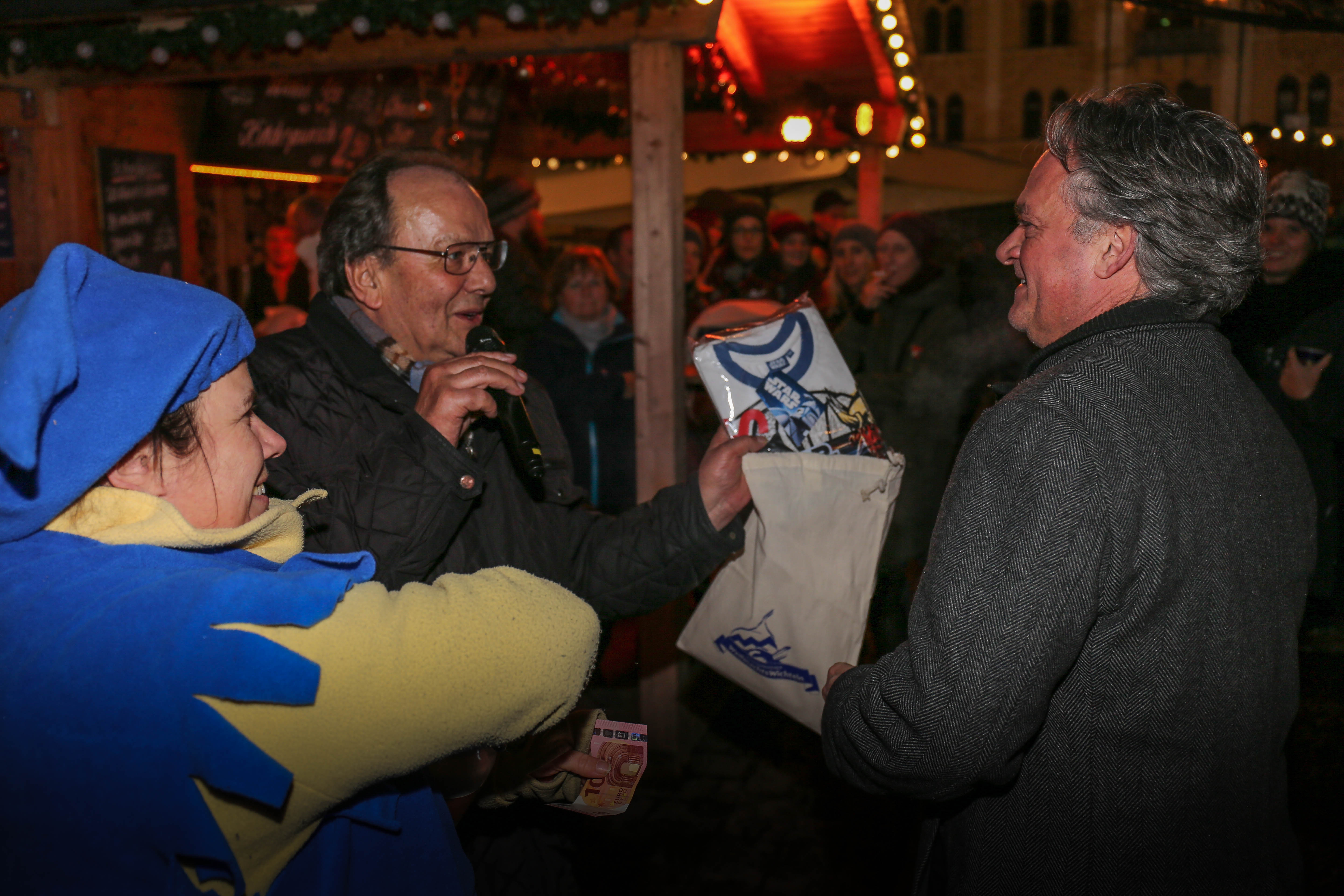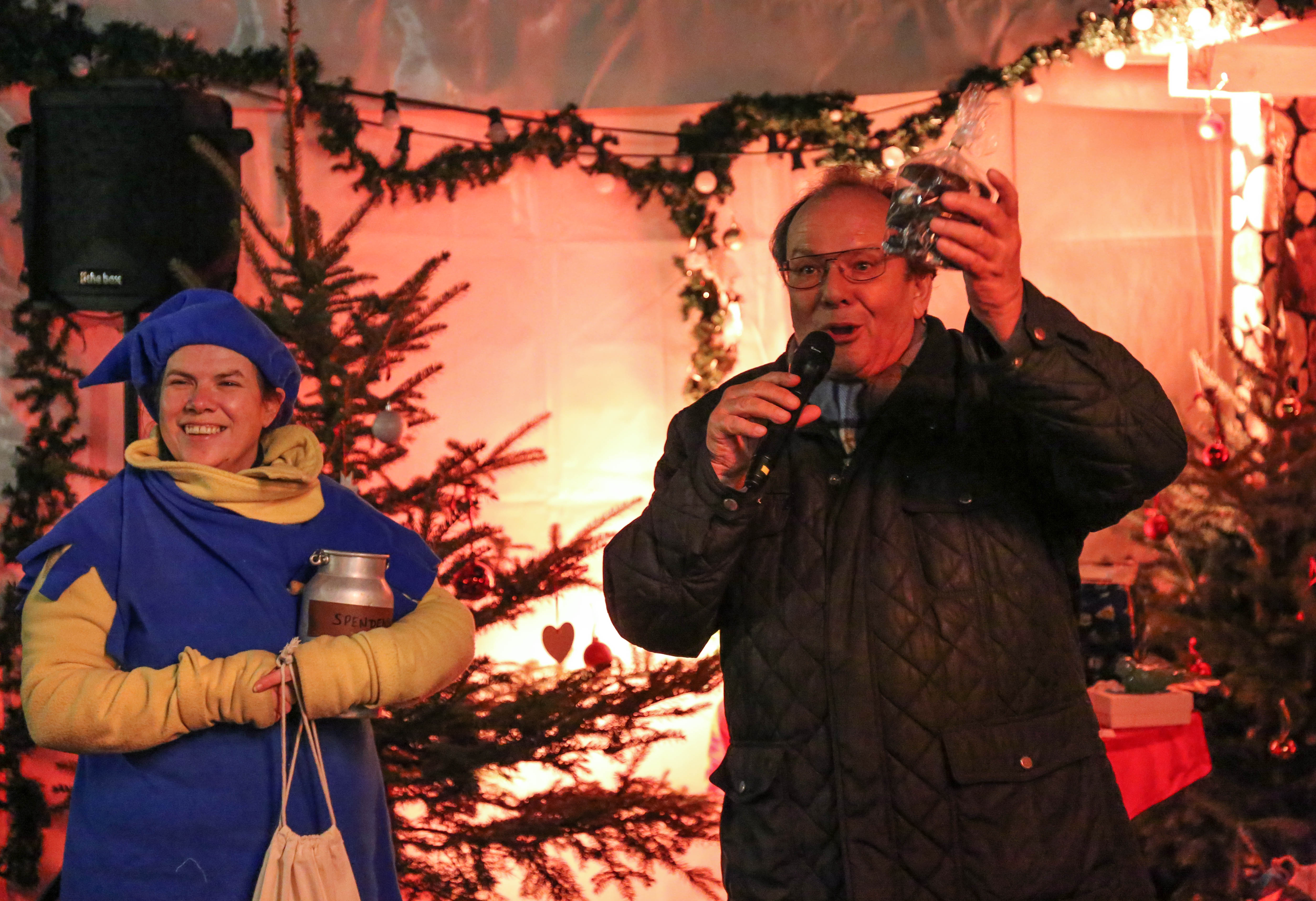 (ty) Eine im wahrsten Sinne des Wortes schöne Bescherung hat der Pfaffenhofener Verein „Lebendige Innenstadt“ am gestrigen Abend mit einer Benefiz-Versteigerung auf dem hiesigen Christkindlmarkt angezettelt. Zugunsten des Vereins SKM („Katholischer Verband für soziale Dienste“) kamen im Wichteldorf diverse Präsente und Überraschungspakete, gestiftet von der hiesigen Geschäftswelt, unter den Hammer. Am Ende kamen auf diese Weise über 250 Euro für den guten Zweck zusammen.